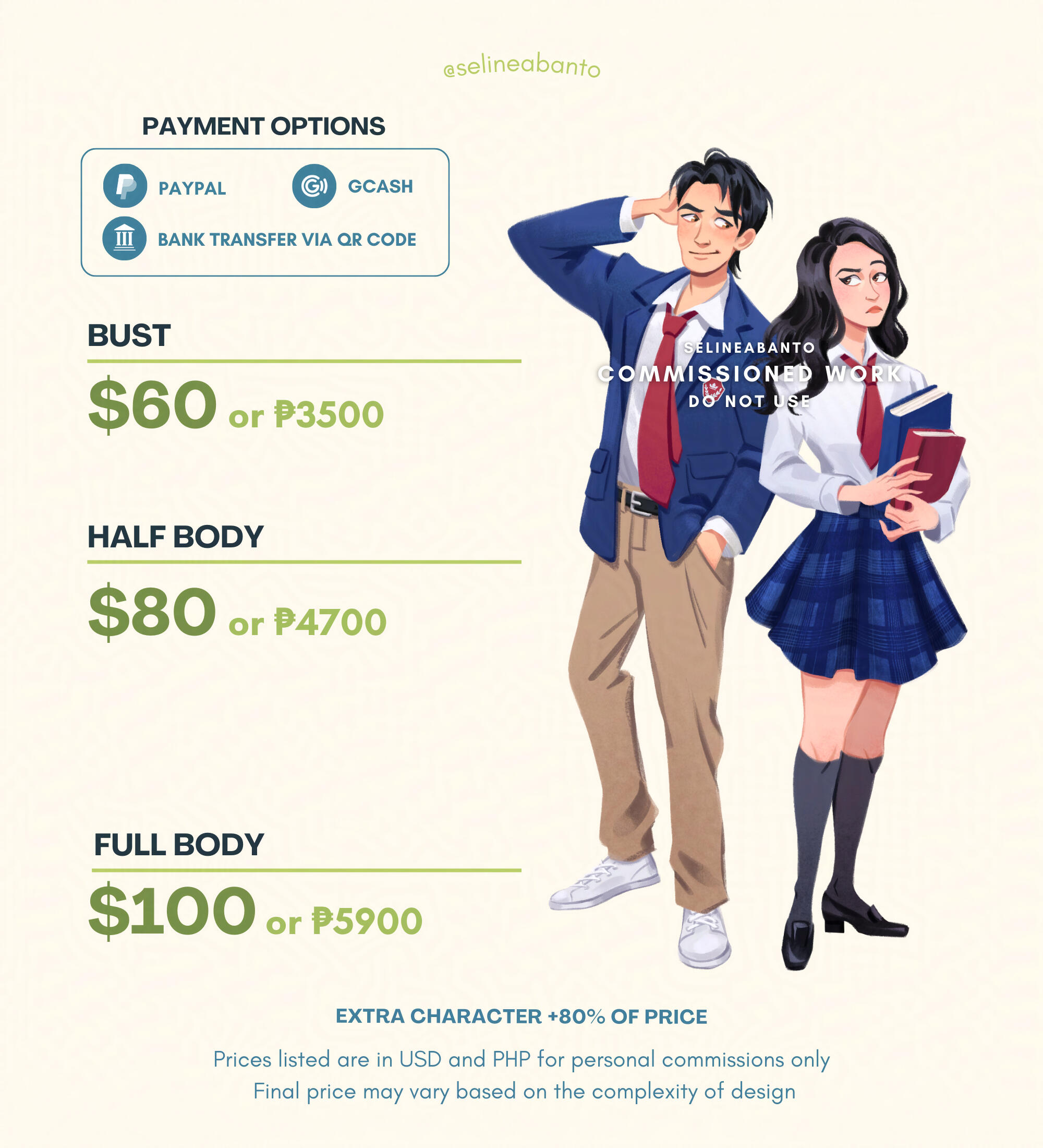 Artist only accepts payment through PayPal, GCash, and Bank Transfer via QR Code