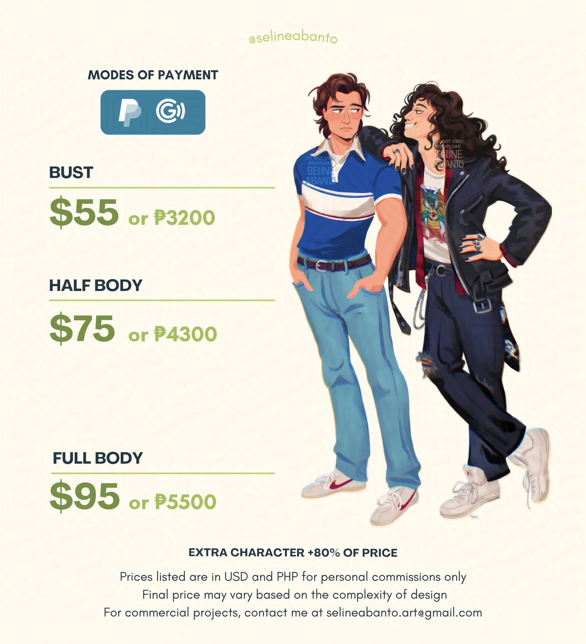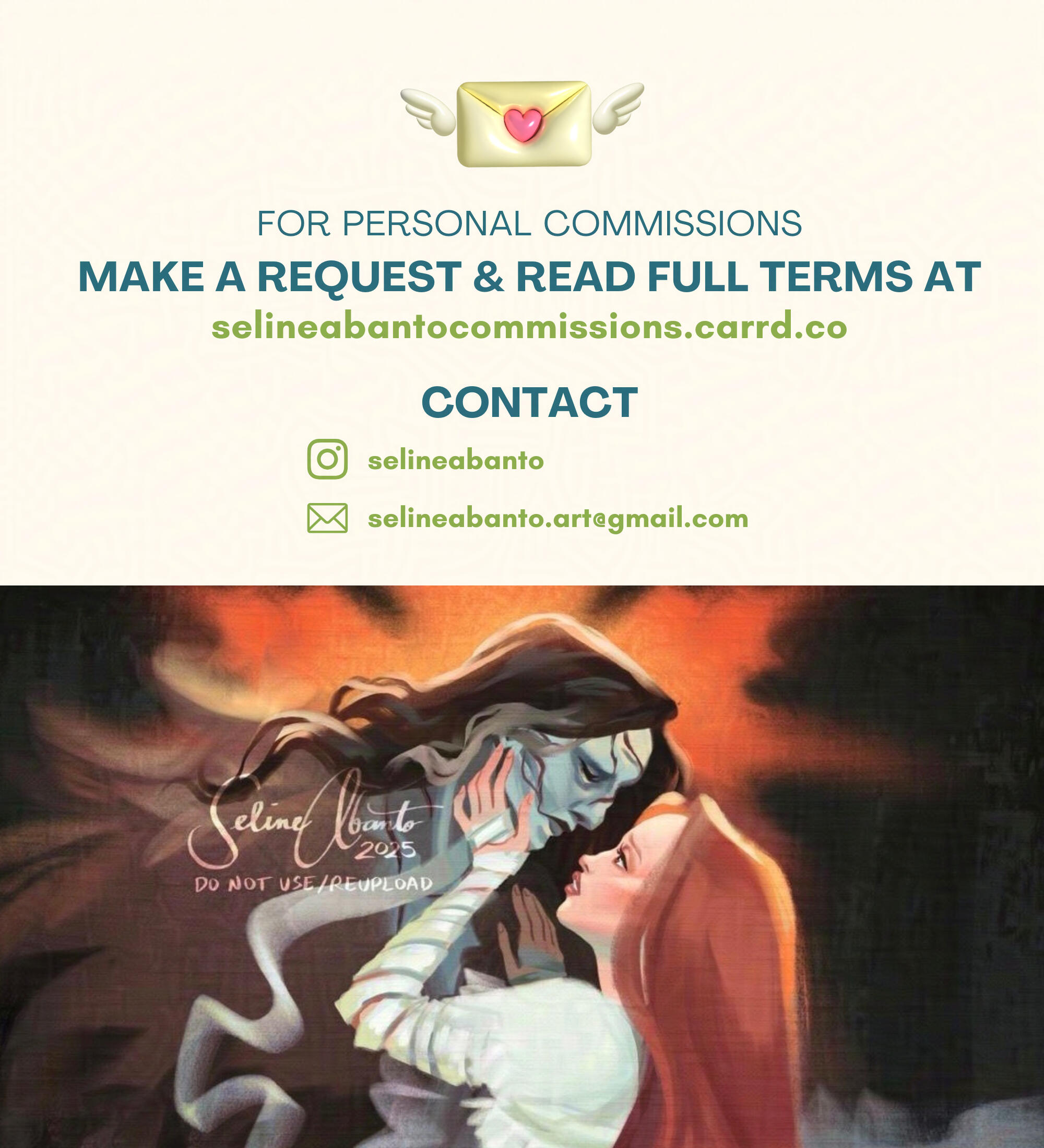 The Client must properly credit the artist by tagging the artist (@selineabanto) and/or linking the artist's site (selineabanto.com).