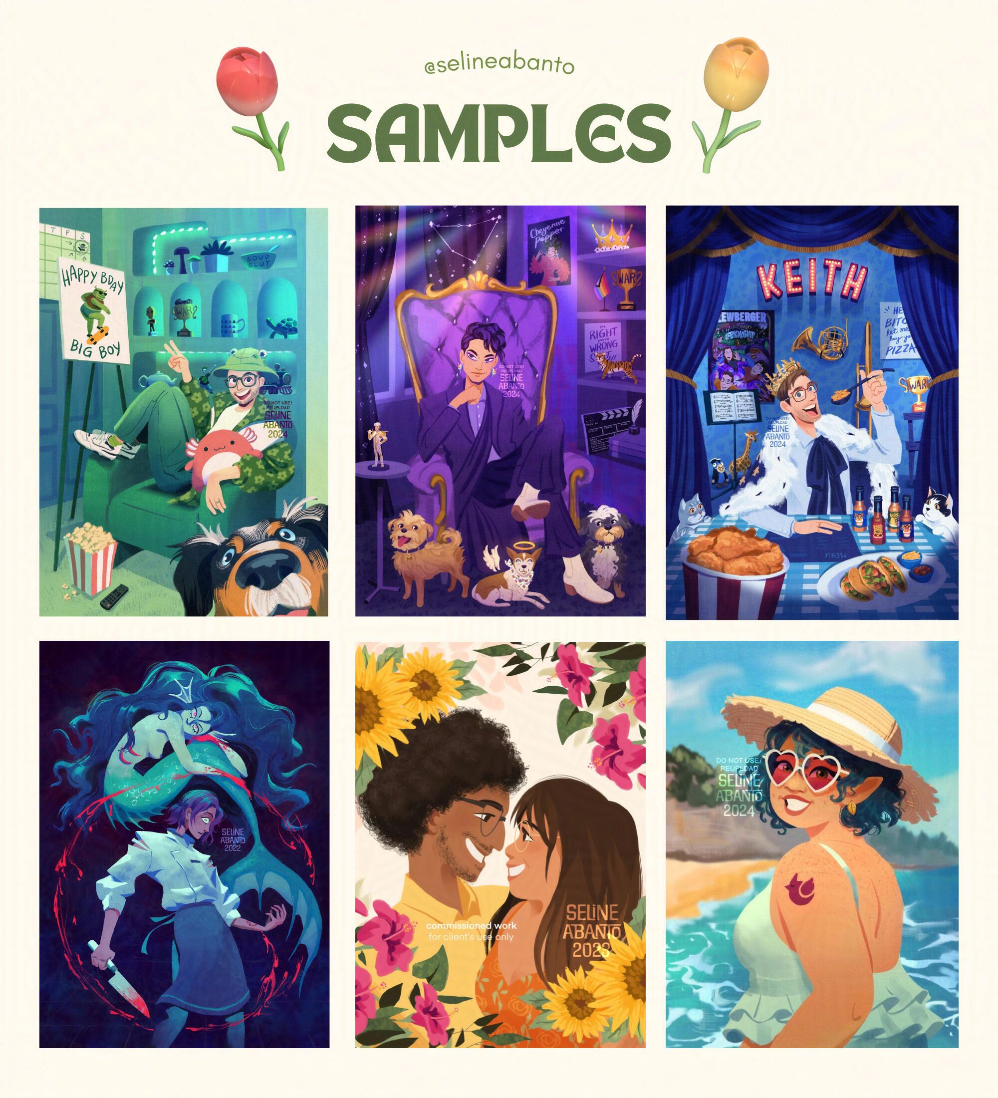 Hi! I'm Seline, a character designer and illustrator that loves the magical and familiar. I've contributed my artistic sensibilities to projects in animation, graphic novels, and publishing. My past clients include Disney Books and Friendly Foes.Welcome to my commissions page! Feel free to look around :)